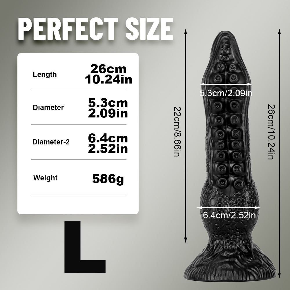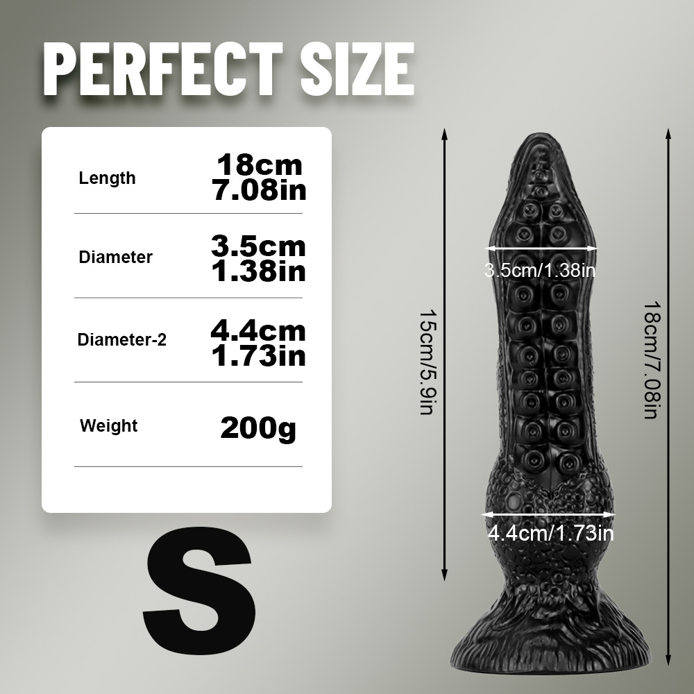 Octopus tentacle design: the dildo simulates the tentacles of an octopus. The tapered head makes it easier to penetrate. The toy has many small suction cups that stimulate your sensitive points and unique texture in all directions and thus satisfy your wonderful sexual imagination experience.
