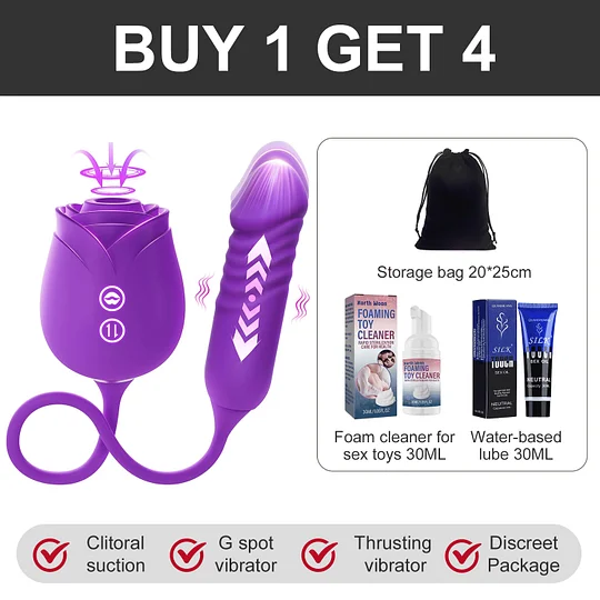 Looking for something more exciting and pleasurable? Meet the upgraded rose vibrator, now featuring sucking and thrusting functions. The suction vibrator provides external clitoral stimulation, while the thrusting dildo targets your G-spot, delivering dual internal pleasure. Whether you're a beginner or an experienced user, the various functions can be controlled independently with separate buttons, allowing you to customize your experience to your preference.