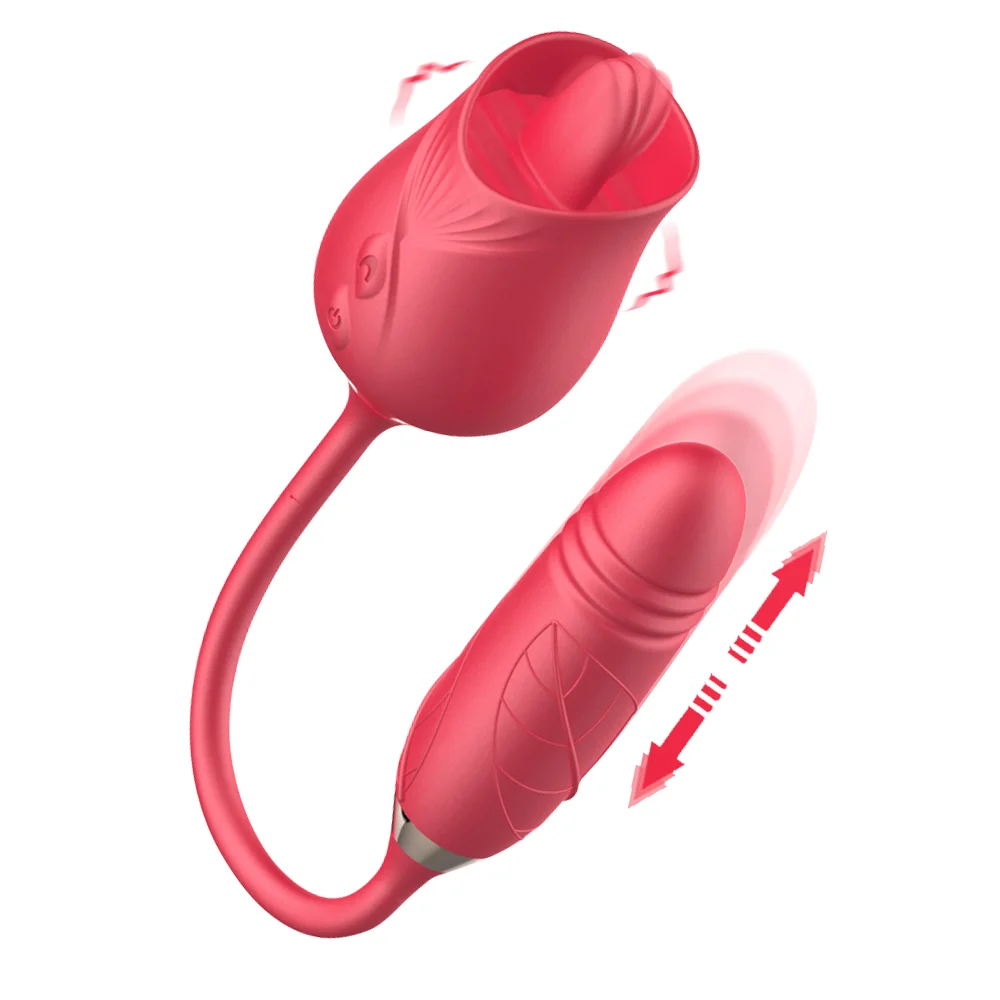 3-in-1 Rose Tongue Extender with Vibrating and Thrusting Dildo for Maximum Sensations