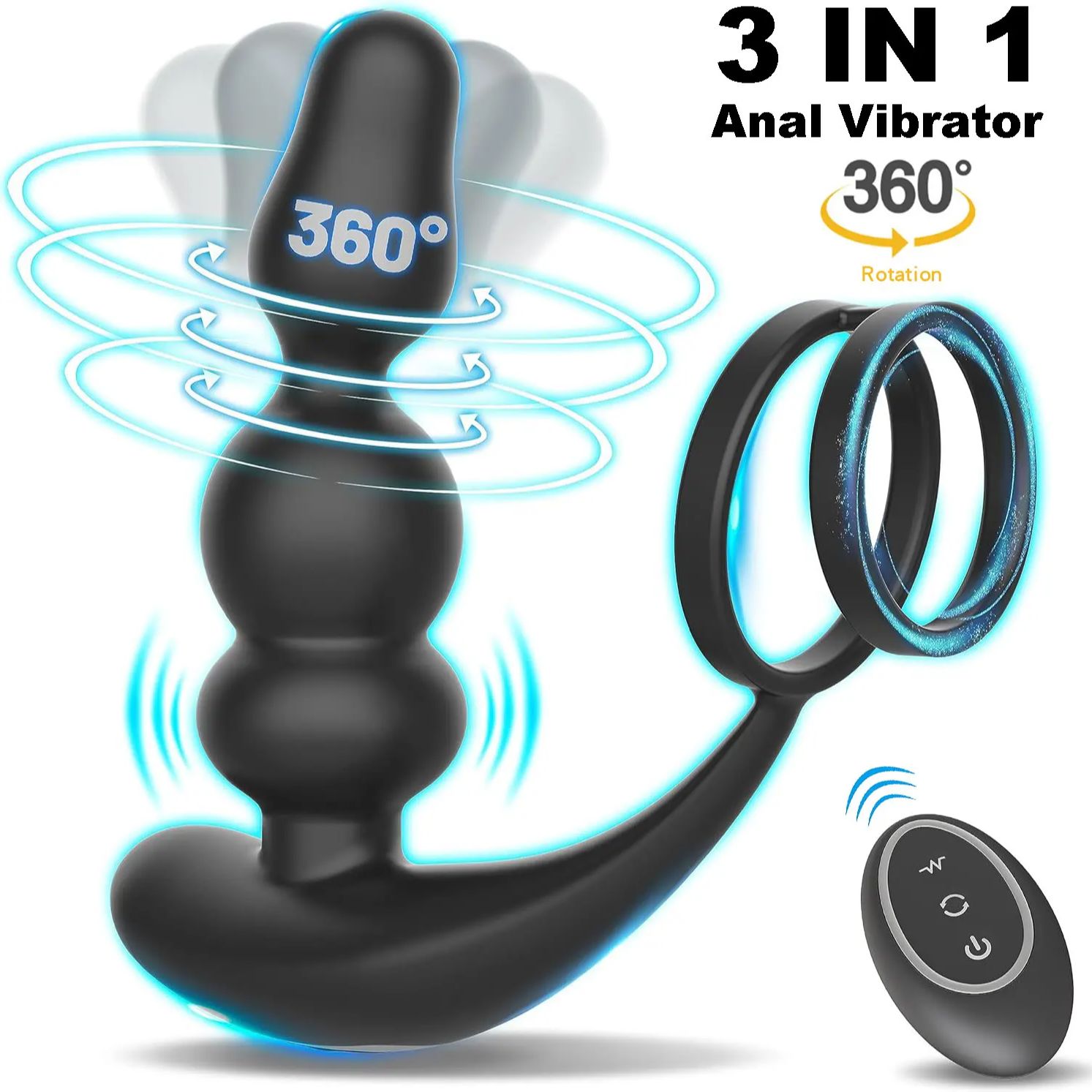360° Rotating Prostate Massager Vibrating Anal Beads with Cock Ring