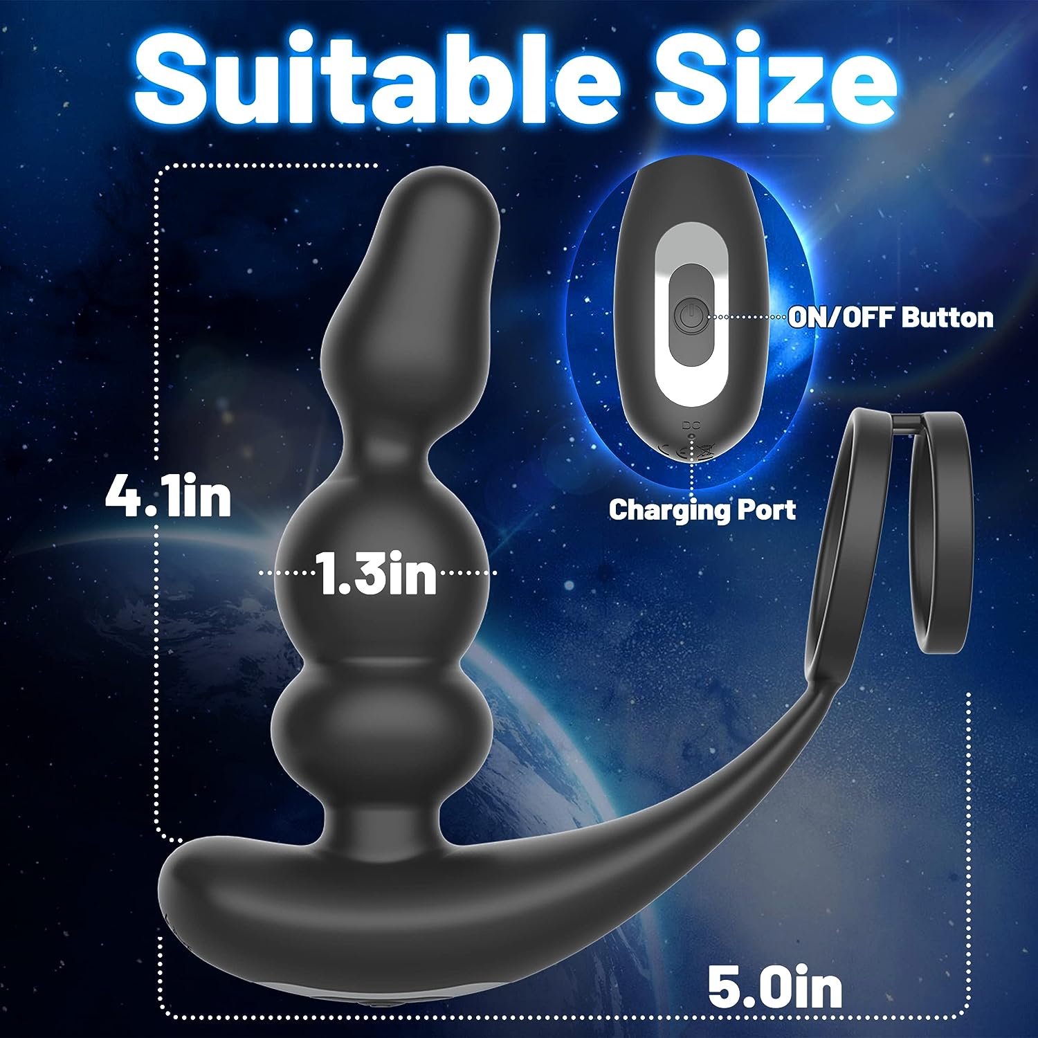 Prostate toys has three anal beads, which enter your body in order from small to large. The diameter of the largest anal bead is 1.3in, and the insertable length of this vibrating buttplug is 4.1in. Wide base covers your perineum. With the insertion of different sizes of anal beads, you will get different intense sensations, which slowly build up your sexual excitement until big "O".